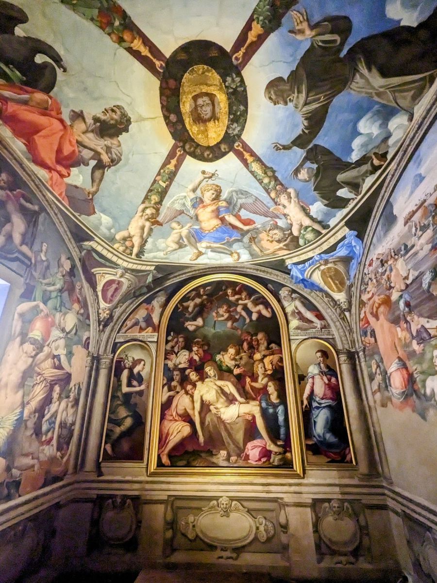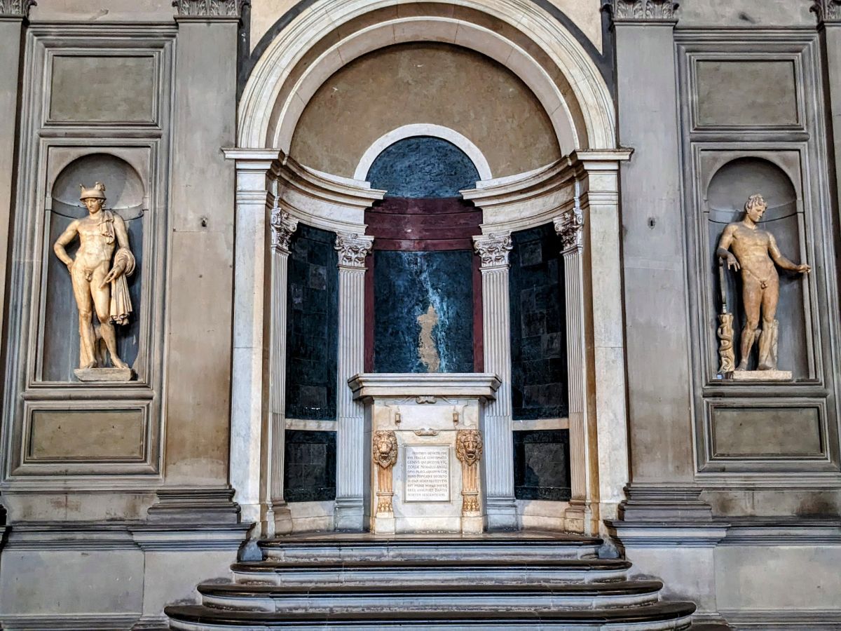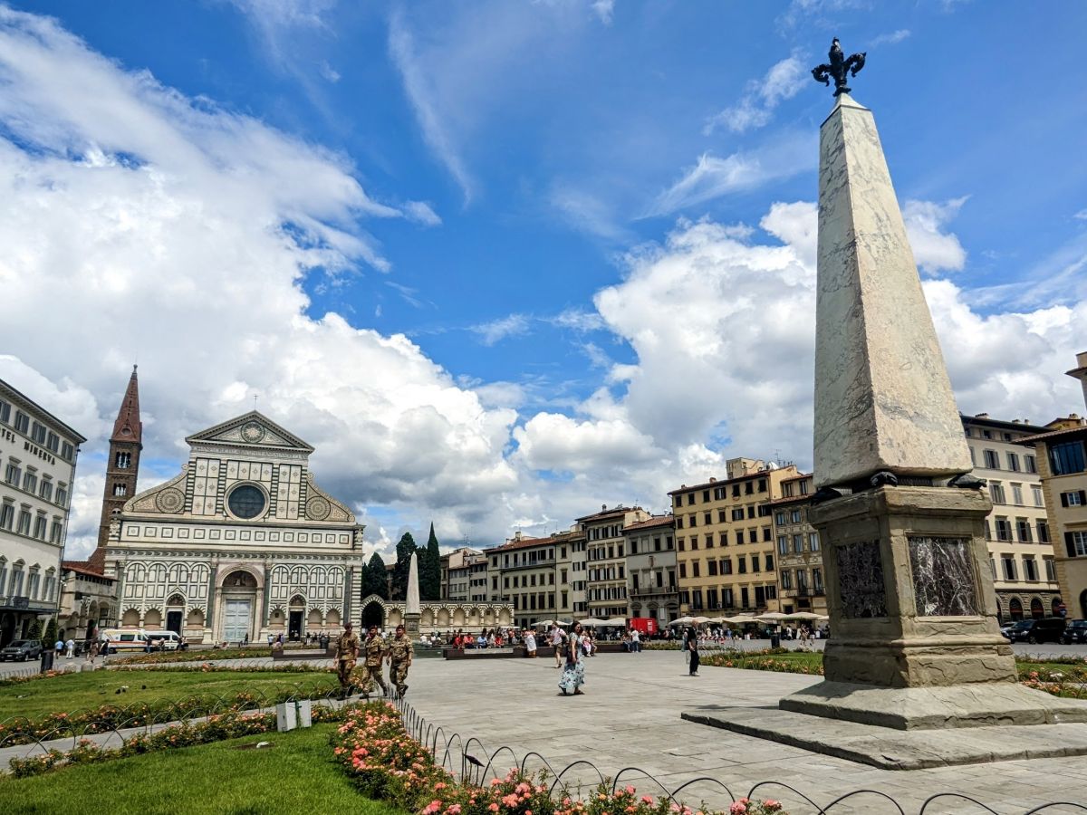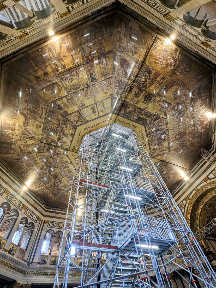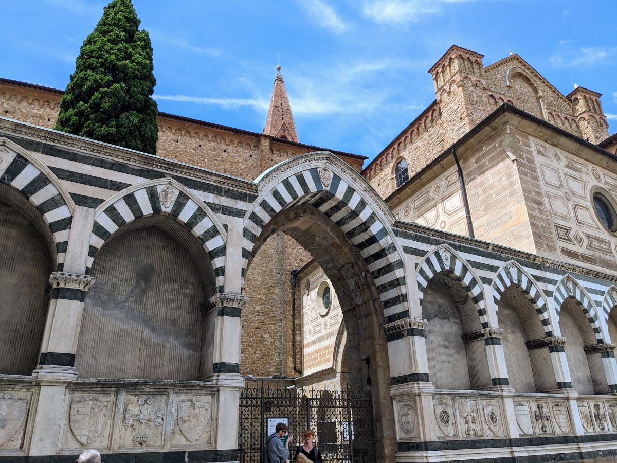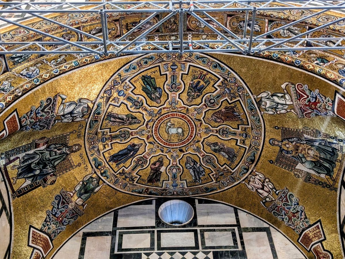 After our mid-morning snack, we headed to the Baptistery of St. John, which is in the Piazza del Duomo. The ceiling was undergoing restoration, but it was still very much worth a visit. It’s one of the oldest buildings in the city, built between 1059 and 1128. Up until 1935, all Florentines were baptized there, including Dante Alighieri, Amerigo Vespucci, and members of the Medici family. The architecture, both inside and out, is extraordinary, taking inspiration from the Roman Pantheon and adding many unique touches. The artwork and sculptures are not to be missed, and there are several sarcophagi and other tombs inside, including the Tomb of Antipope John XXIII. The exterior doors are also great works of art. The south doors present 20 scenes of John the Baptist, the patron saint of Florence. The north doors, designed by Ghiberti, depicts the life of Christ in 20 panels. The east doors, also by Ghiberti, depict stories from the Old Testament beginning with the Creation of Adam and Eve and end with the meeting of King Solomon and the Queen of Sheba. The east doors have become known as the “Gates of Paradise” after Michelangelo said they were so beautiful that “they might fittingly stand at the gates of Paradise.”