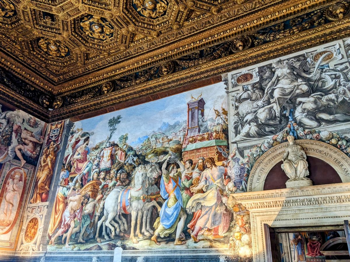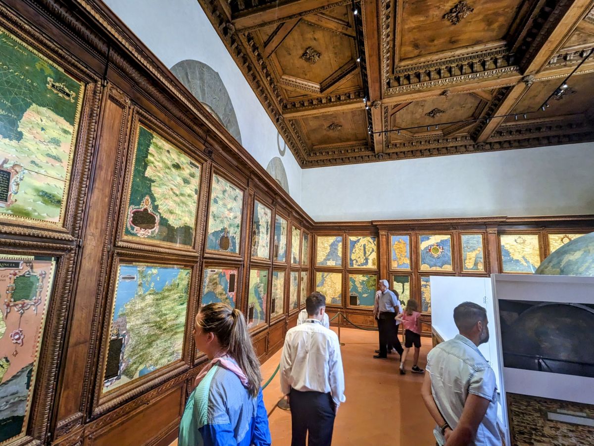 Inside the Palace, the apartments, the grand Hall of the Five Hundred, and other various rooms were amazing, each with intricate ceilings and other decorations. Each room in the palace is a work of art unto itself. One of our favorite rooms was the map room, with world maps from different ages. Pictures don’t do the palace justice, but here are a bunch we took anyway!