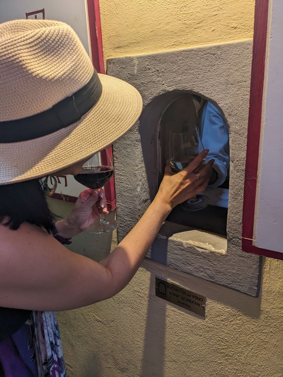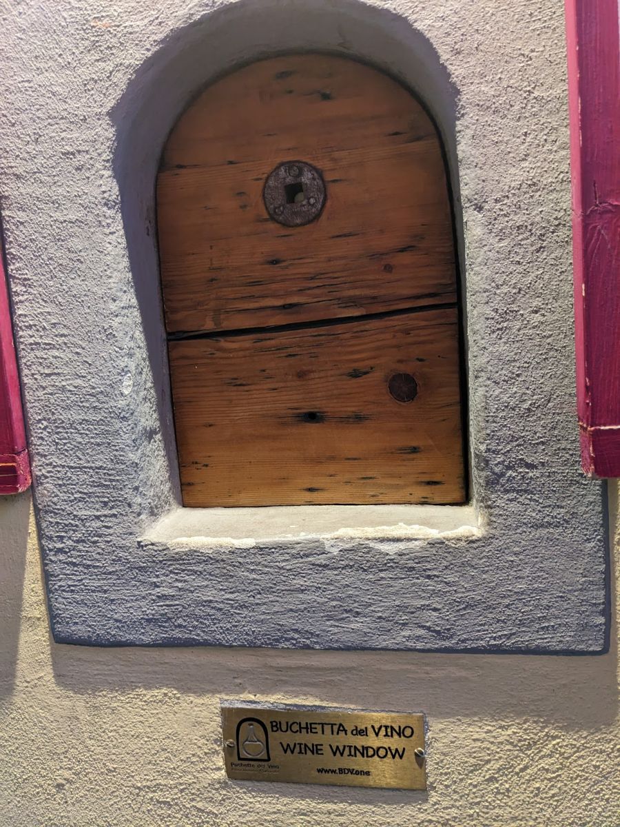 On our way there, we stopped at one of the famous wine windows in the city. This particular window was at Osteria Belle Donna. While there, we made dinner reservations for the next evening. Wine windows (buchette del vino) were originally used so sell wine during the 16th century, as a good way for nobles to sell excess wine from their vineyards tax-free and without having to open a shop. They became even more popular during the 17th century as a way to observe social distancing during the bubonic plague. The wine windows had a renaissance during the COVID-19 pandemic, as social distancing was once again the norm.