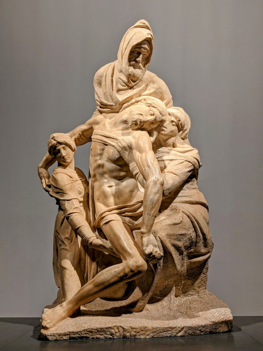 The Duomo Museum is fantastic. The museum contains, among other things: ruins of the original medieval churgh, the original doors of the Baptistery (the current doors are exact replicas), the Penitent Magdalene (a wooden sculpture of Mary Magdalene, by Donatello), Michelangelo’s Pietà Bandini (a sculpture of Nicodemus, Mary Magdalene, and the Virgin Mary holding Christ’s body…it’s believed Michelangelo intended this piece for his own tomb), detailed models of the Duomo, tools used during construction, many different model versions of the cathedral façade that were submitted but never implemented, and so much more.