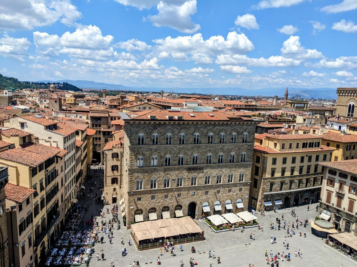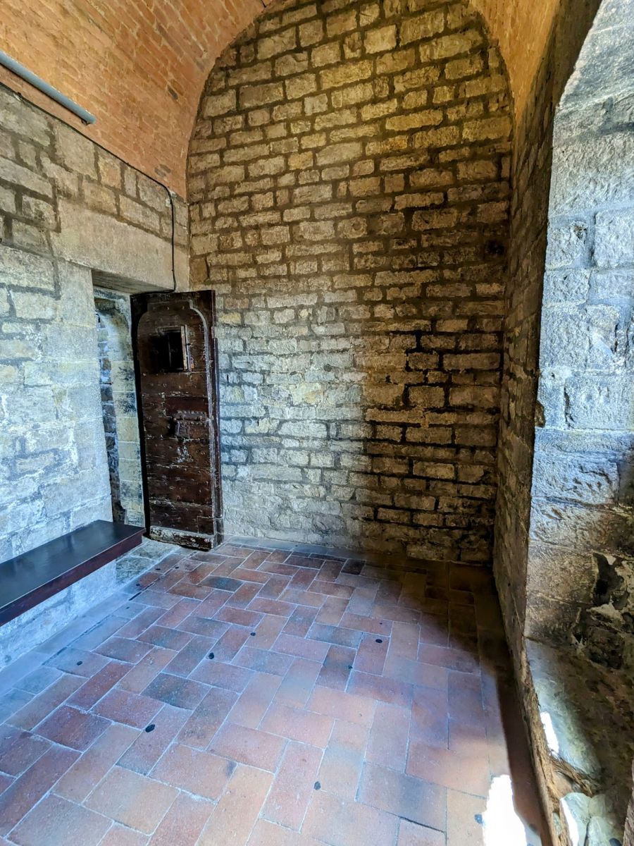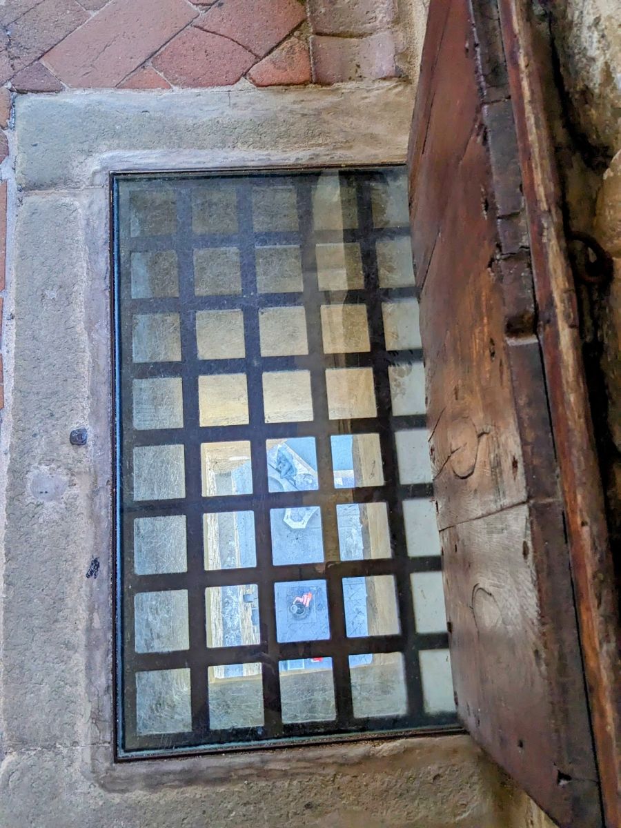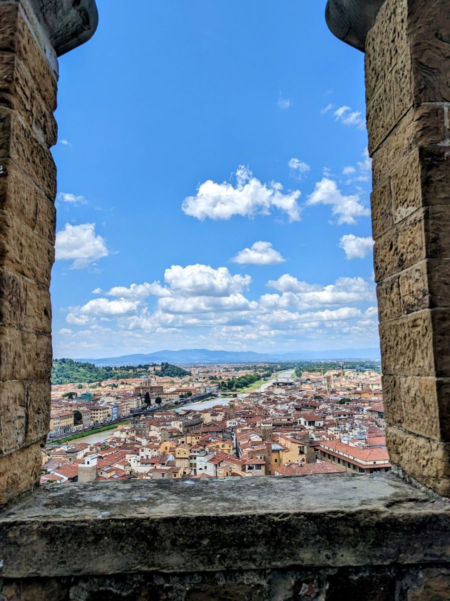 After a lunch of porchetta and salad, we headed back to Palazzo Vecchio so I could climb the tower. The tower takes its name from the architect Arnolfo di Cambio, and was built at the beginning of the 14th century. It’s a fairly easy climb, but if you don’t want to go all the way to the top, there’s a nice viewing area on the roof of the Palazzo, before you ascent the tower. There’s a small prison cell built into the tower where Cosimo de’ Medici was imprisoned before his exile.