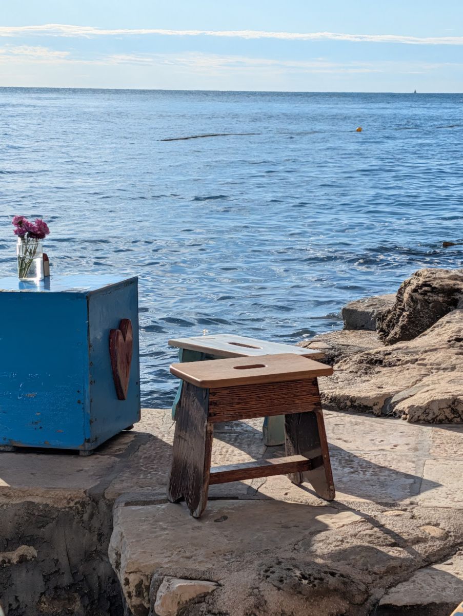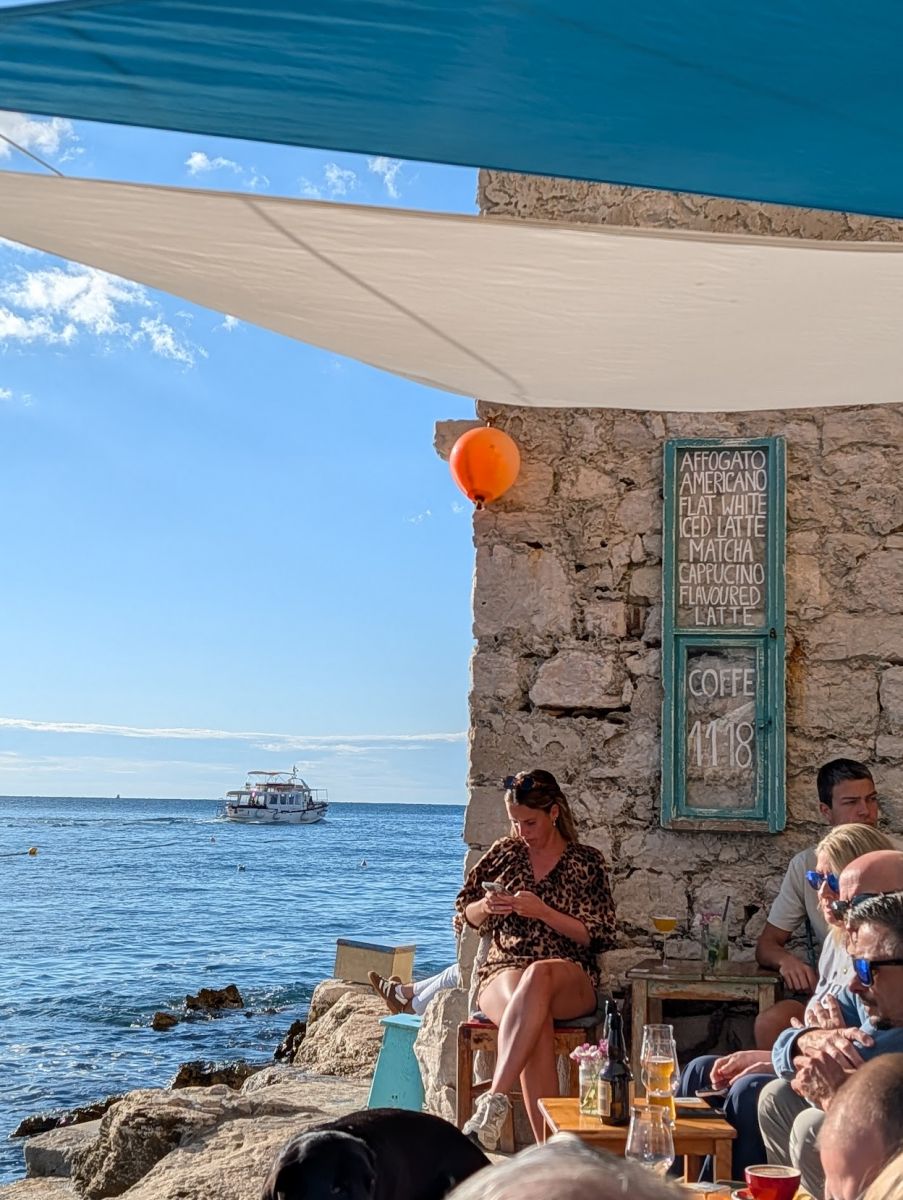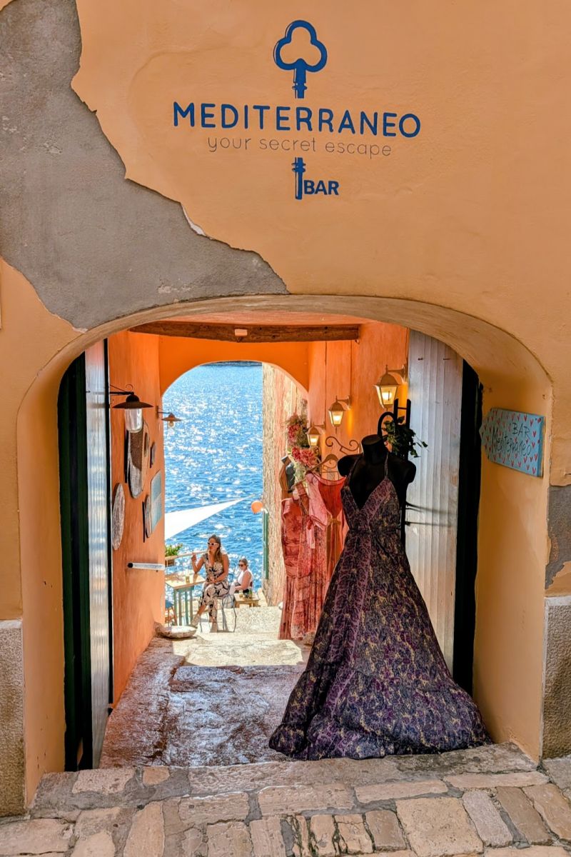 During our walking tour, we passed a bar that’s nestled along the cliffs – literally. We came back for a drink before dinner. The Mediterraneo Bar features seating that’s right on the water. Our chairs were inches from the edge! The drinks were good and the view spectacular.
