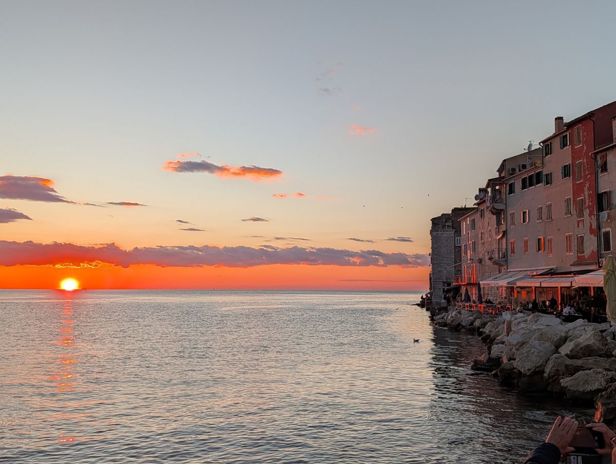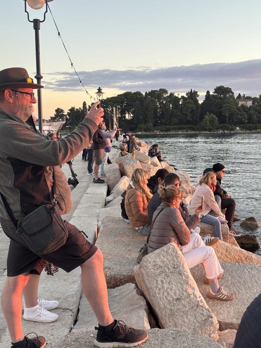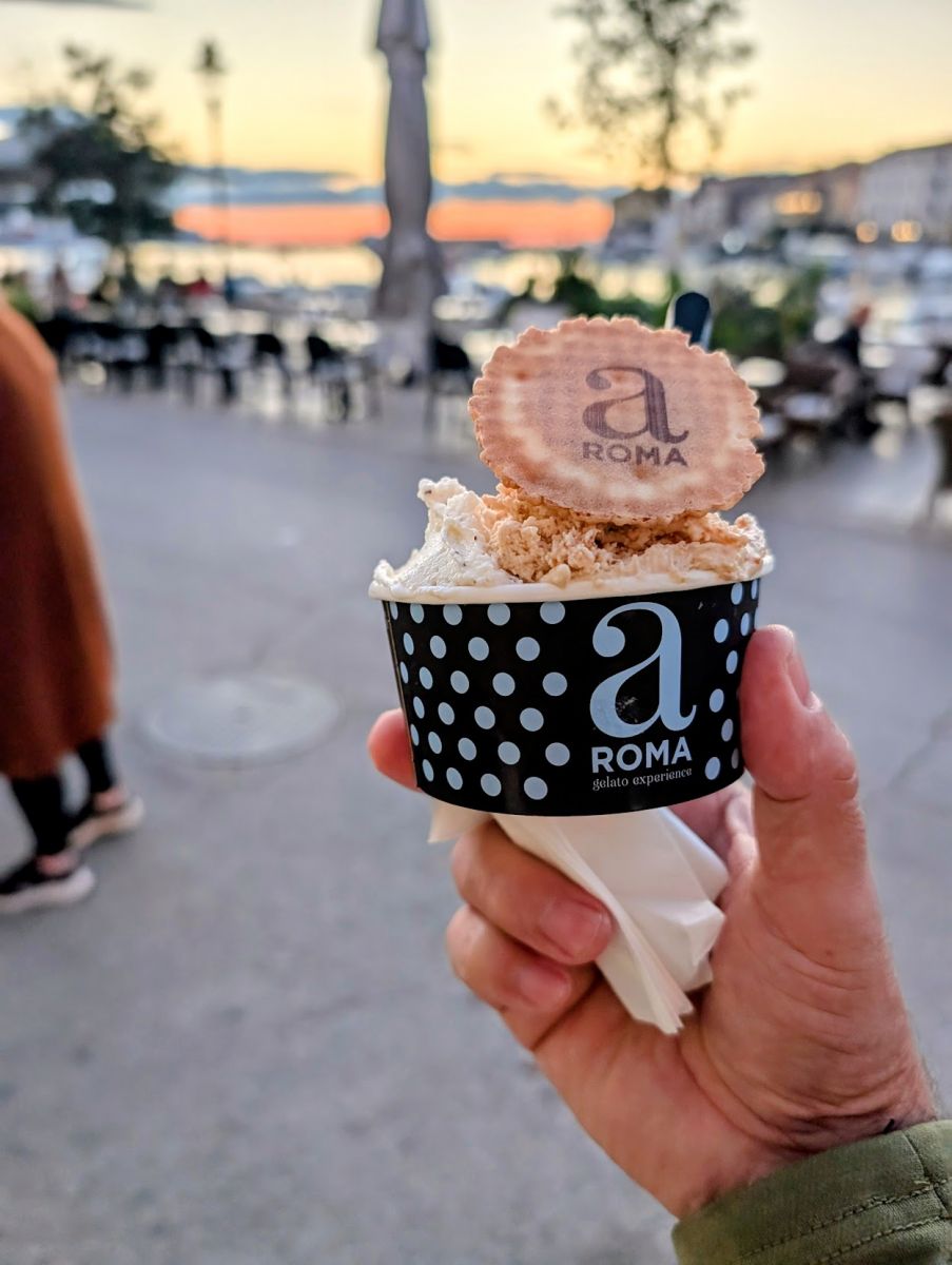 After dinner we stopped to watch the sunset (along with everyone else), then got gelato at A-Roma. (A-Roma is a chain, but a good one. The other gelato shops in Rovinj were touristy and mass produced. A-Roma hand crafts their gelato daily. We would find better local shops in other cities, but for Rovinj, A-Roma hit the spot.) Finally, back to the apartment for some card games before bed.