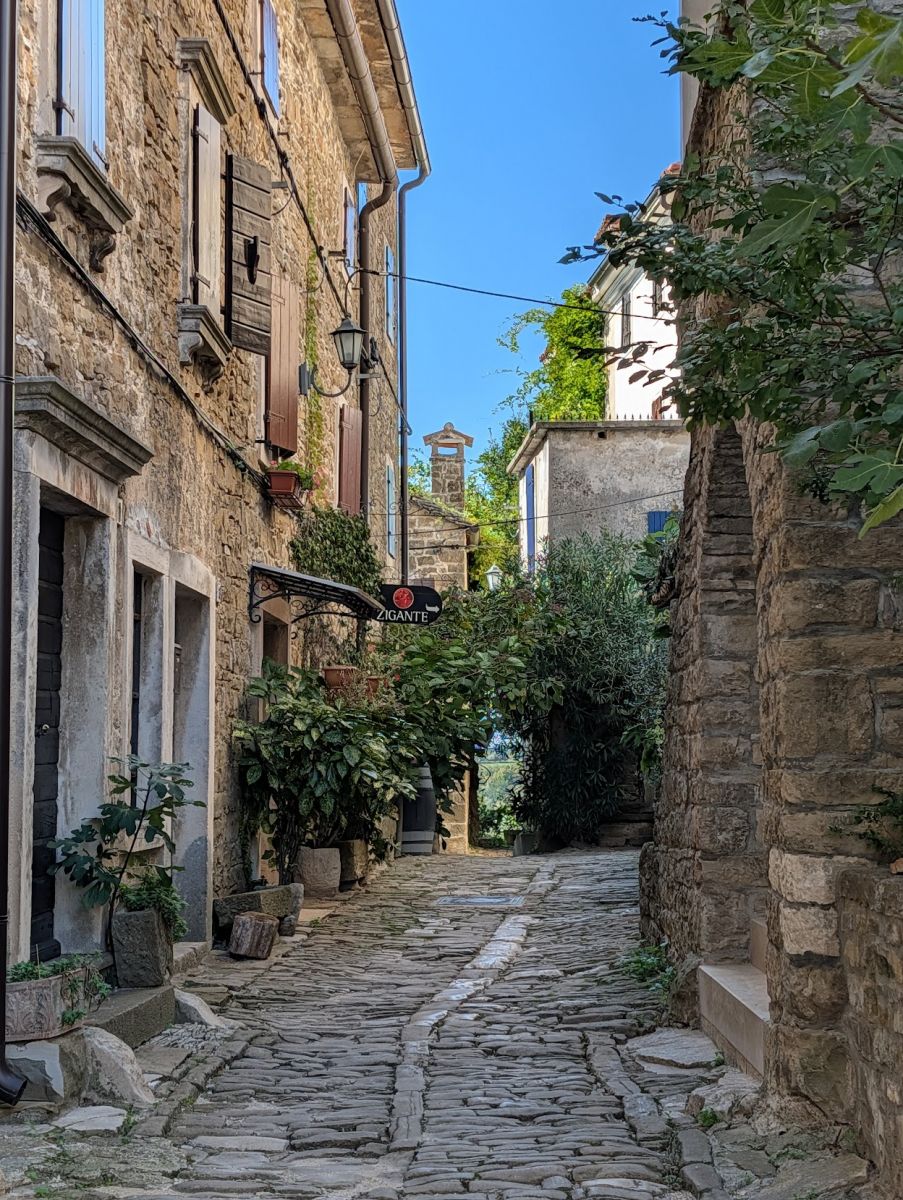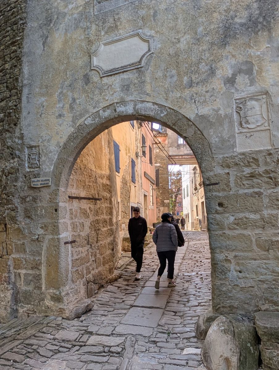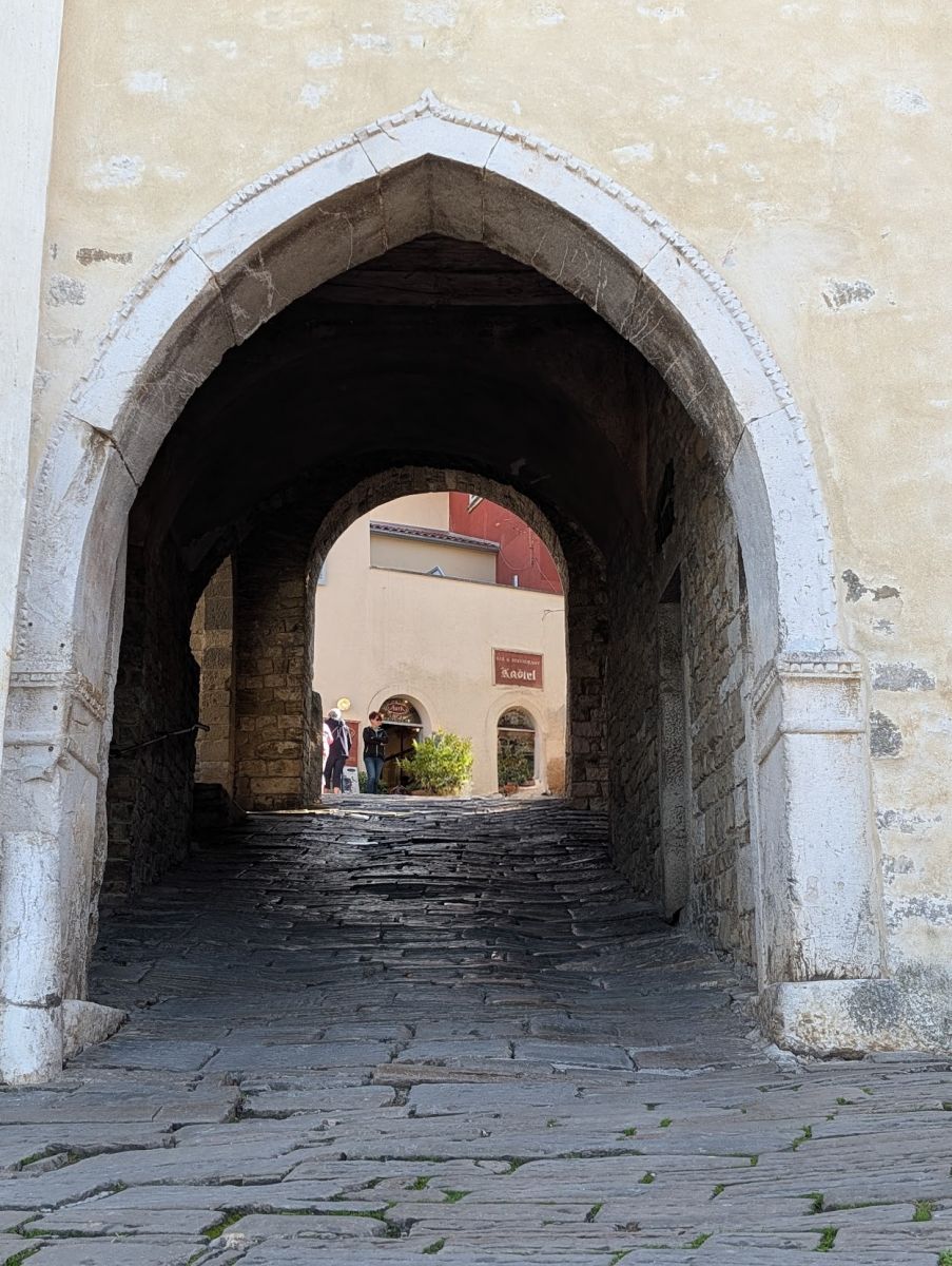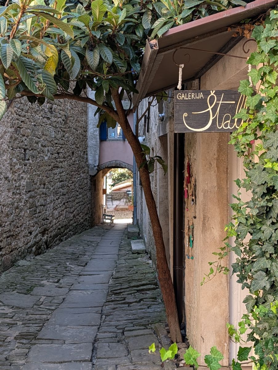 After Motovun we stopped at Grožnjan, a tiny artists village. The village was at one time nearly deserted, so they started attracting artists with cheap rents. The village features narrow cobblestone streets, medieval architecture, and numerous art galleries, studios, and workshops hosted in historic buildings. It regularly hosts music festivals, art exhibitions, and cultural events, particularly during the summer, drawing artists and visitors from across Europe.