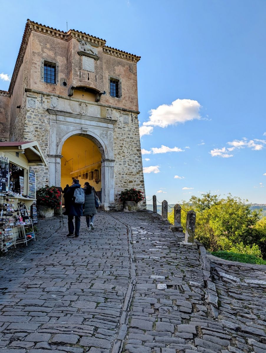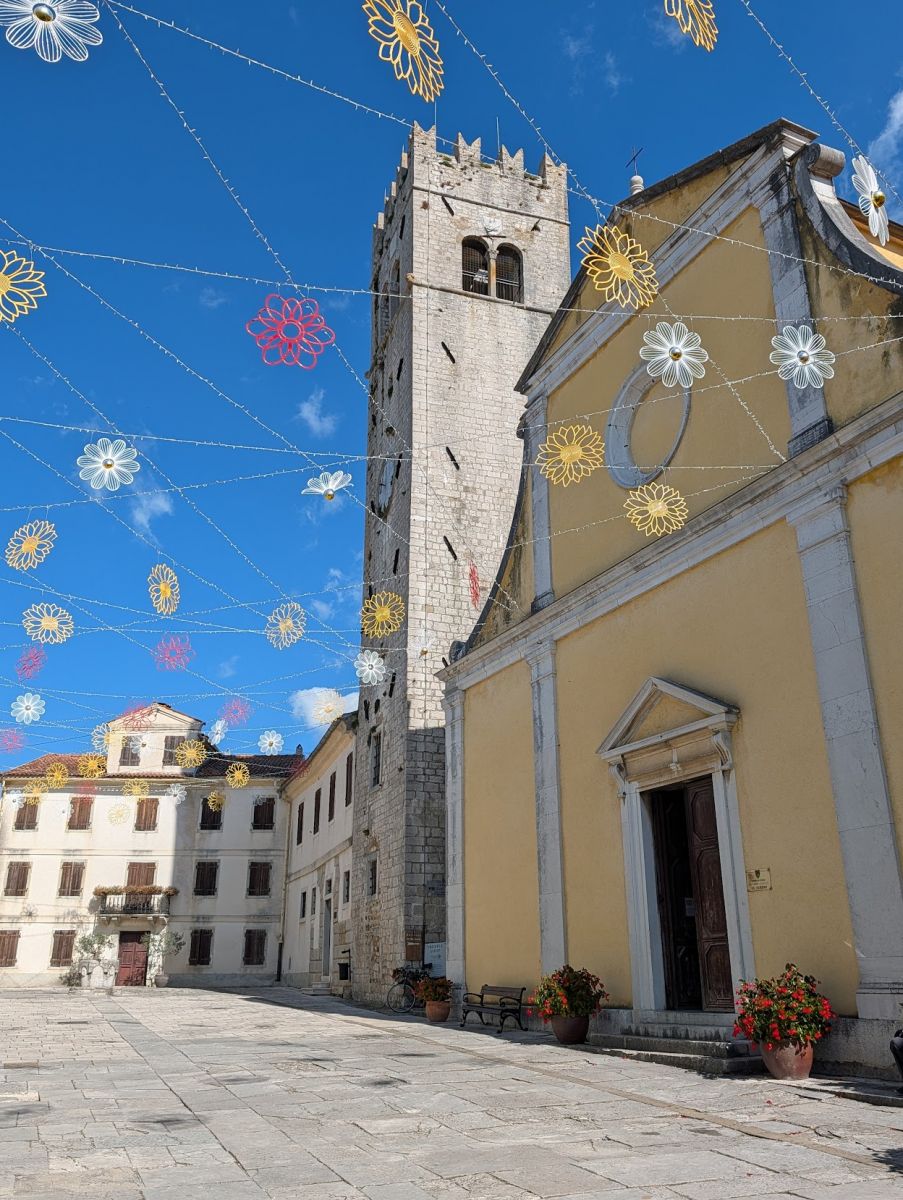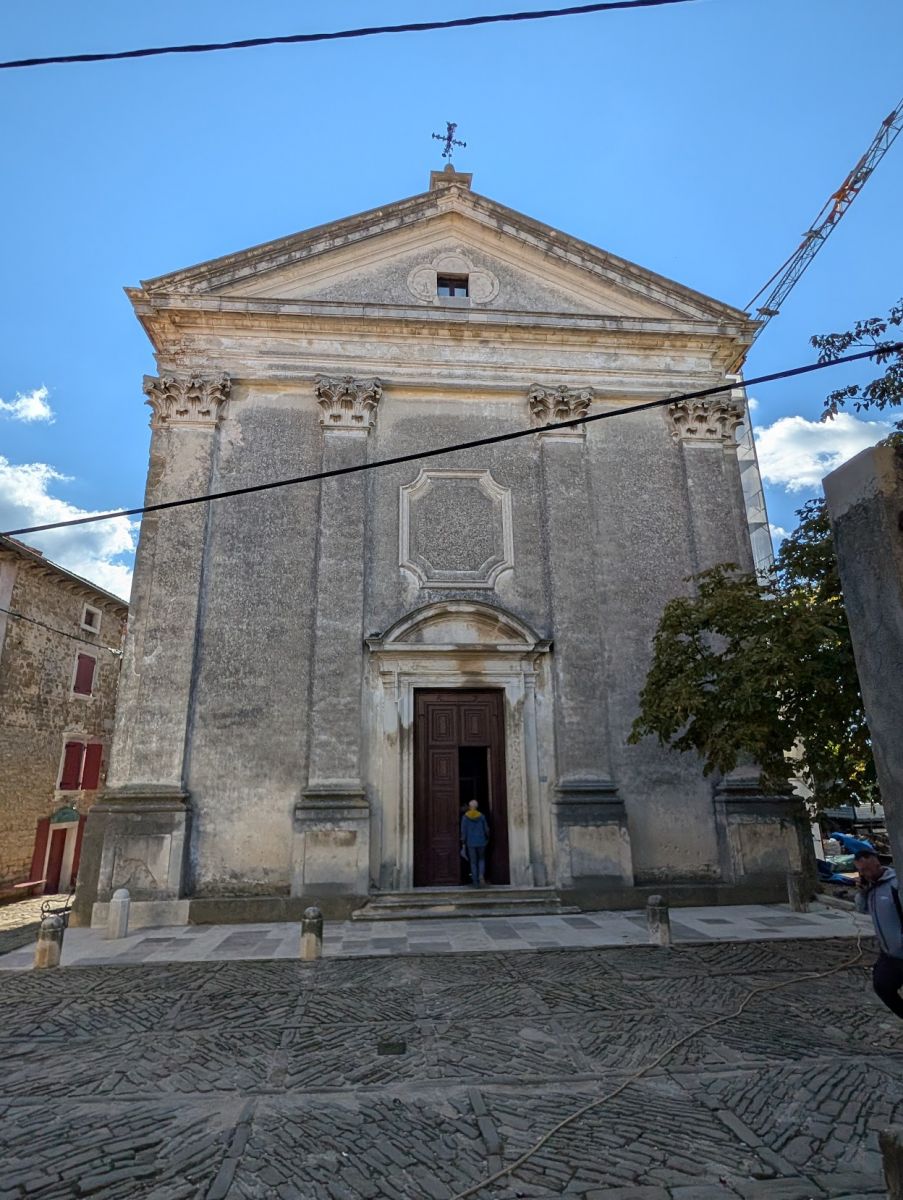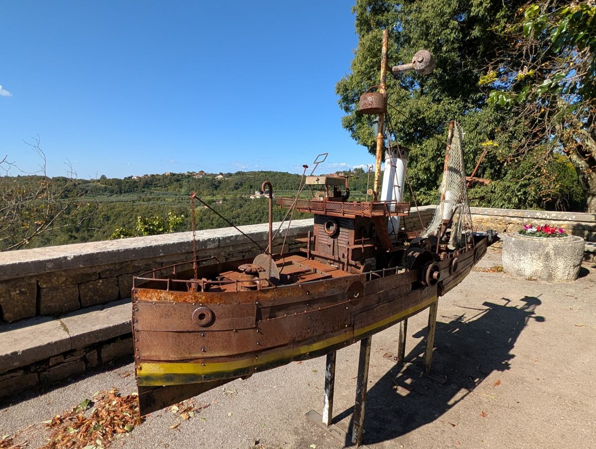 After Motovun we stopped at Grožnjan, a tiny artists village. The village was at one time nearly deserted, so they started attracting artists with cheap rents. The village features narrow cobblestone streets, medieval architecture, and numerous art galleries, studios, and workshops hosted in historic buildings. It regularly hosts music festivals, art exhibitions, and cultural events, particularly during the summer, drawing artists and visitors from across Europe.