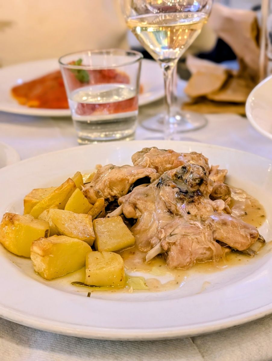 After settling in (and a short rest), we walked to dinner at Il Chianti Osteria Toscana. It was recommended by someone, but I don’t remember who. It was good! I had rabbit in a white wine sauce, and Teresa had spinach ravioli.