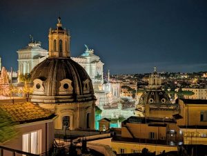 Our train to Rome was uneventful, arriving in Rome at 3pm. We checked in to Hotel Pace Helvezia, which is very centrally located. It’s across the street from Palazzo INAIL del Brasini, and a short walk from Trevi Fountain. It’s an older hotel, but nice. The view from the rooftop is stunning.