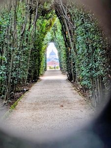 We spent the morning exploring, starting with a trek up Aventine Hill to the peek through the Aventine Keyhole, through which you can see a perfectly framed dome of St. Peter’s. The doorway containing the keyhole leads to the Priory of the Knights of Malta, the legendary crusader knights and religious order. The site has extraterritorial status, so is not technically part of Italy. This makes the view through the keyhole quite unique, as you can see the trees in the garden of the Priory, the dome of St. Peter’s (which is in the Vatican City State—technically its own country), as well as surrounding buildings that are in Italy proper.
