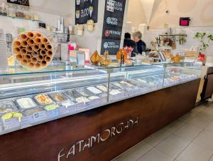 For dessert we went to Fatamorgana, a gelateria with multiple locations throughout Rome. We went to the Fatamorgana Chiavari location, since it was very close to Emma. It was the best gelato on the trip. They had a huge selection of flavors, from traditional to adventurous. I tried one with ricotta and pear (delicious!) and Teresa tried white almond (also delicious!) Neither was overly sweet, which we liked. I already know what I’m going to try next time: one scoop of carrot cake, one scoop of cognac & nutmeg creme pat. There was a walking tour there when we arrived, which is a good sign. 5 out of 5 stars.