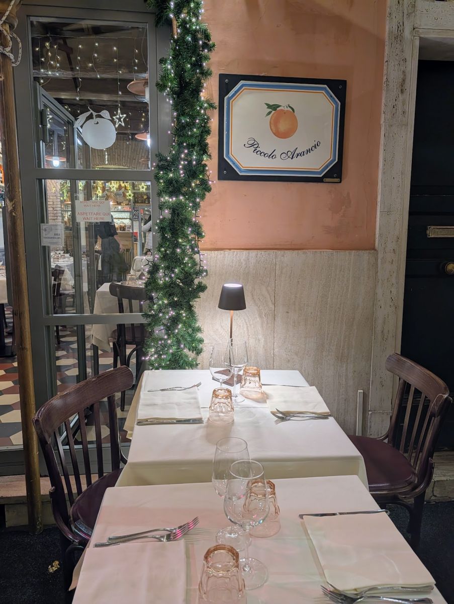 After walking back to the hotel for a short nap (passing the Colosseum, which we’ll explore further on another day), followed by some shopping (including a return trip to Rinascente), it was time for dinner, which we enjoyed at Piccolo Arancio.