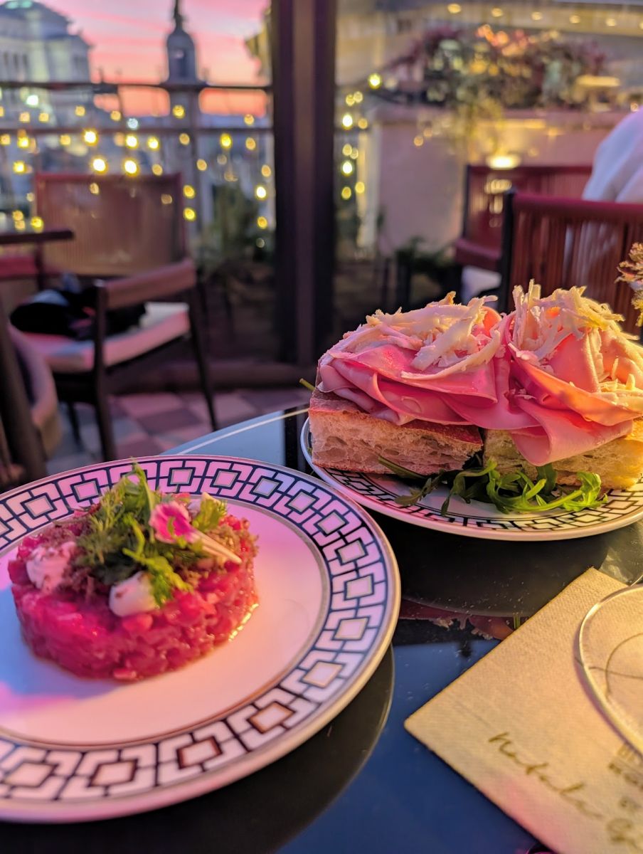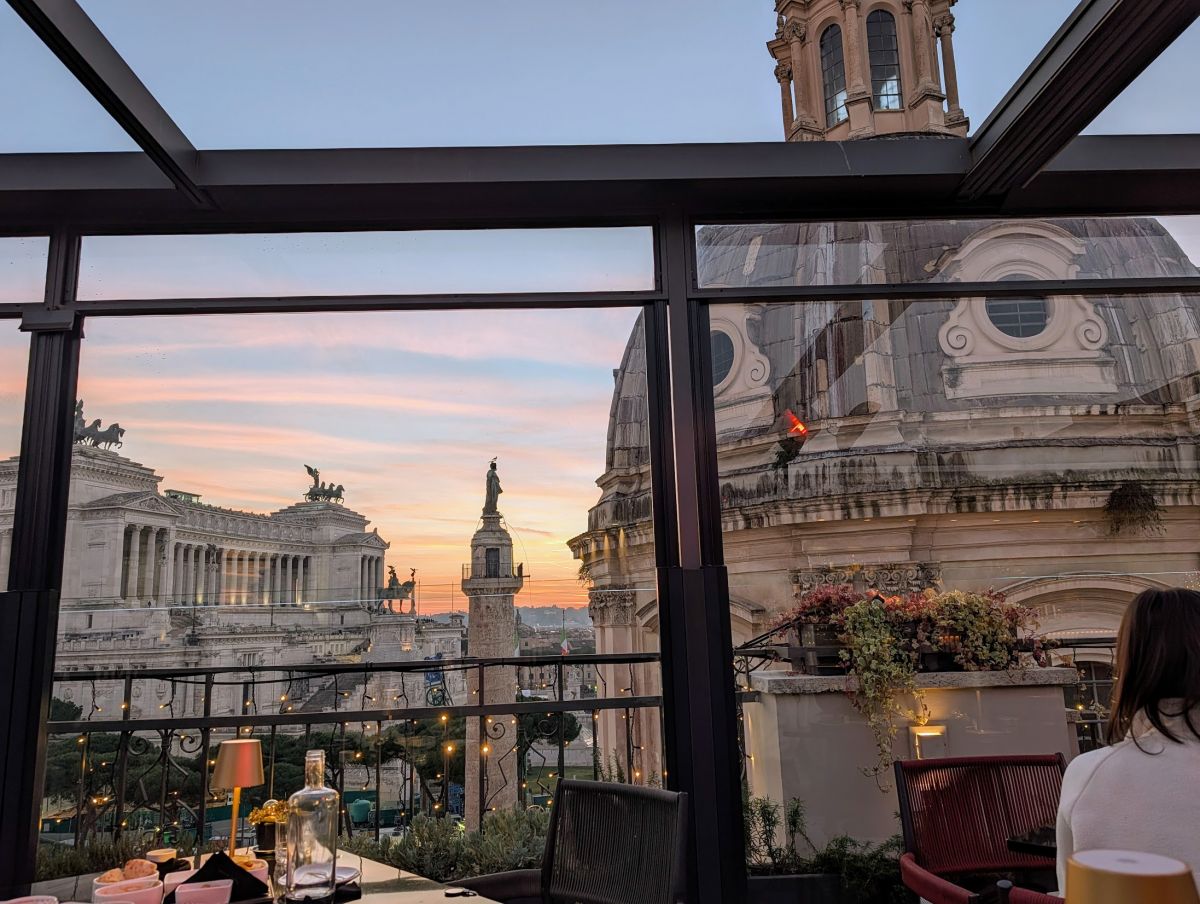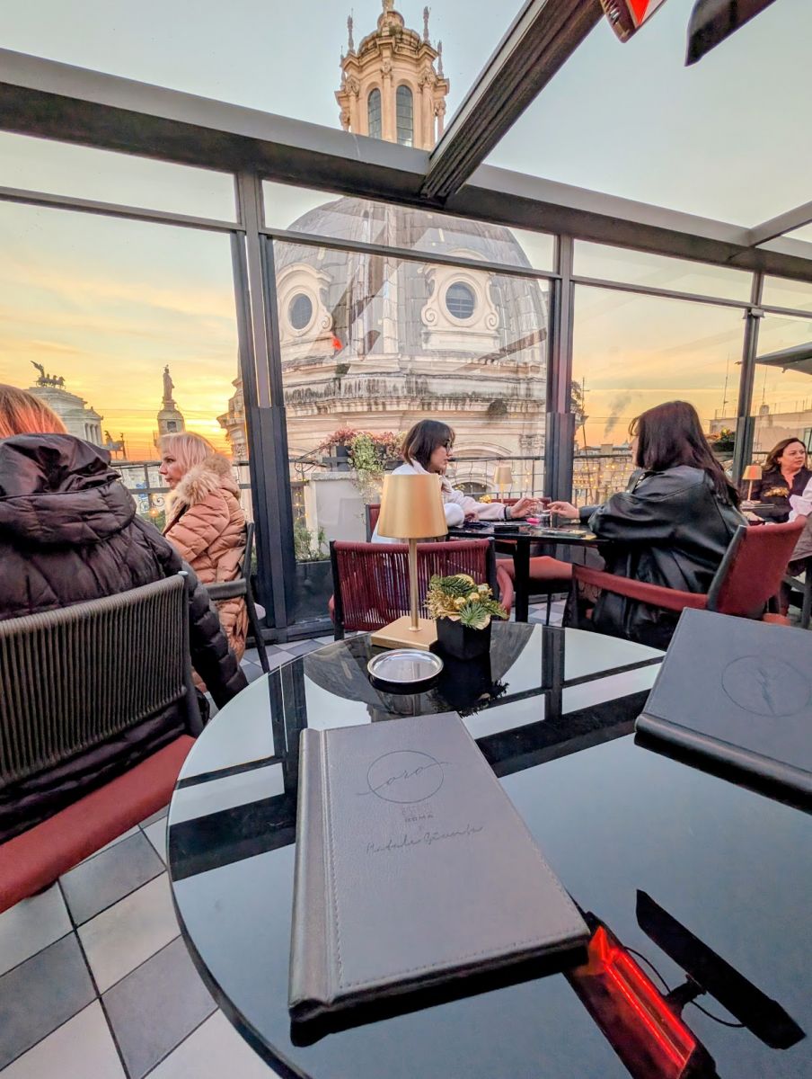After a quick drink at Cafè Bristrot/Vini we headed to Oro Bistrot for an early/light dinner. We were able to get a table without a reservation after a short wait. If going later in the evening, you’ll probably need reservation, as the space is fairly small and the views are incredible. The duomo of the church with the longest name (Church of the Most Holy Name of Mary at the Forum of Trajan) is basically at eye level, and so close you feel like you can tough it.
