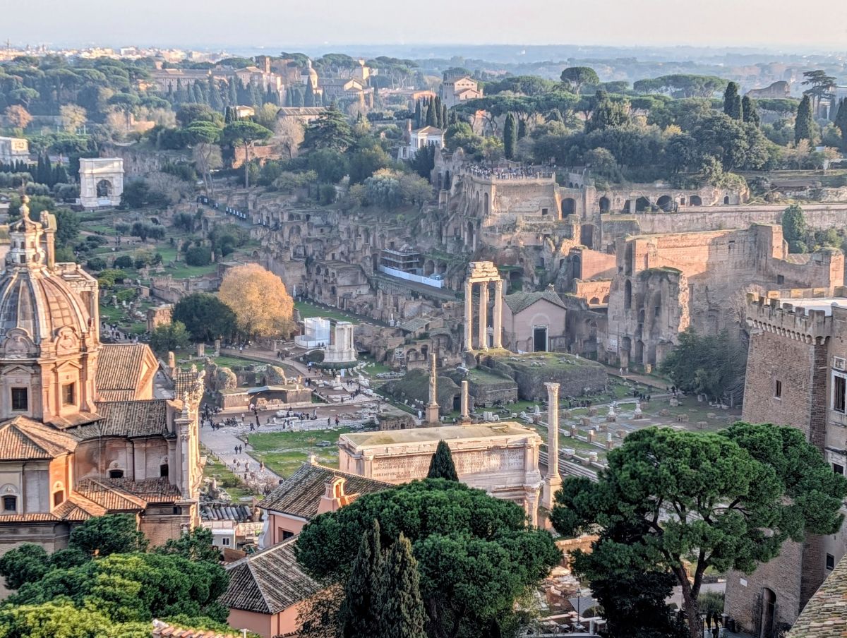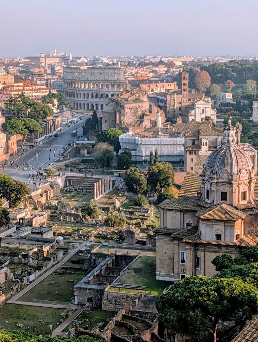 Later in the afternoon, I went to the top of the Altar of the Fatherland, also known as the Victor Emmanuel II National Monument, also known as Vittoriano. It’s a huge monument, built 1885 and 1935 to honour Victor Emmanuel II, the first king of a unified Italy. It sits at the head of Piazza Venezia (which was under construction while we were there—the entire piazza was fenced off). The views from the top were stunning.