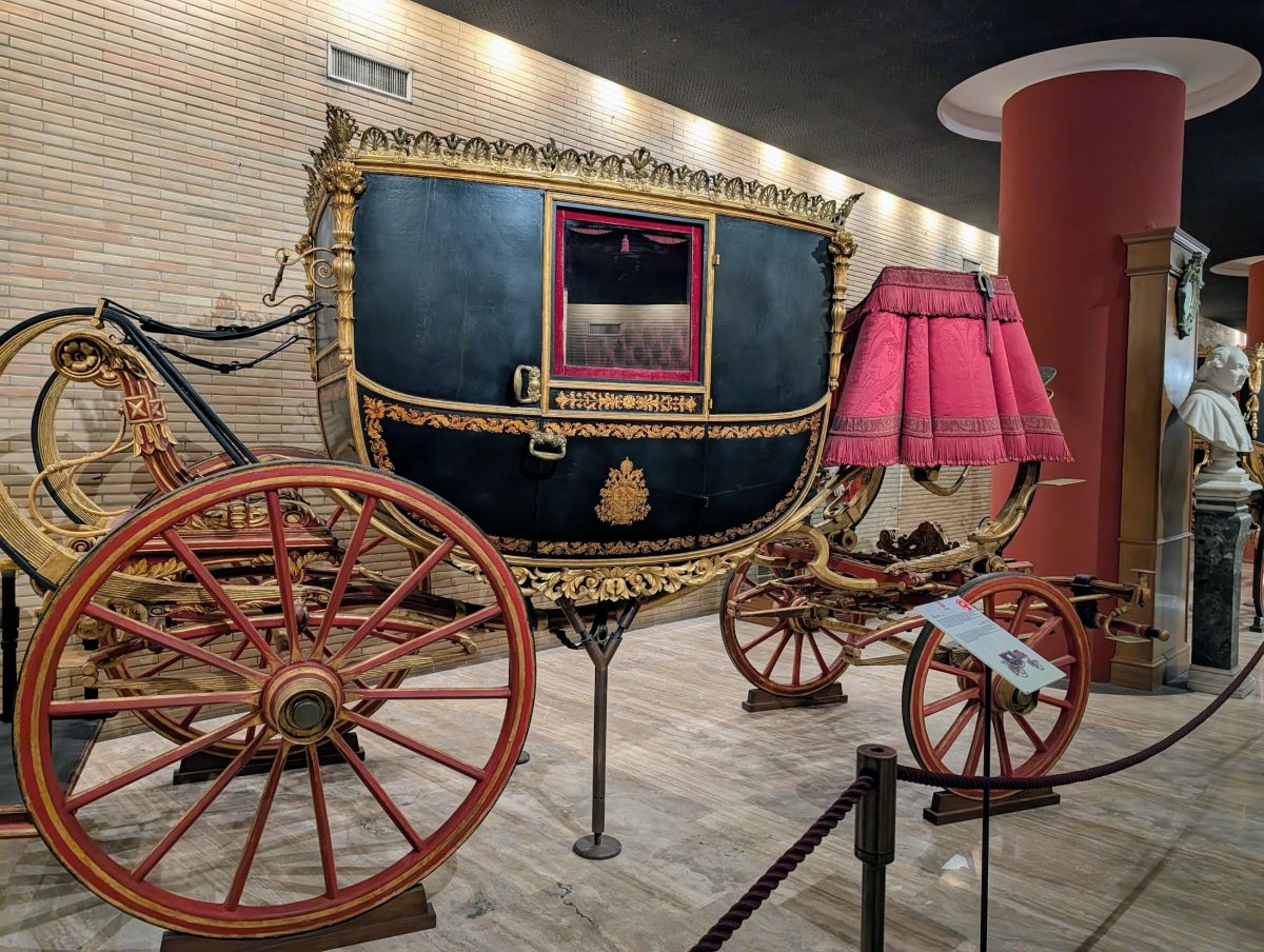 The last thing we checked out at the Vatican was the Carriage Pavilion—a collection of carriages and cars that have carried Popes around for hundreds of years. It was a fun exhibit. To find it, look for the elevator in the Giardino Quadrato.