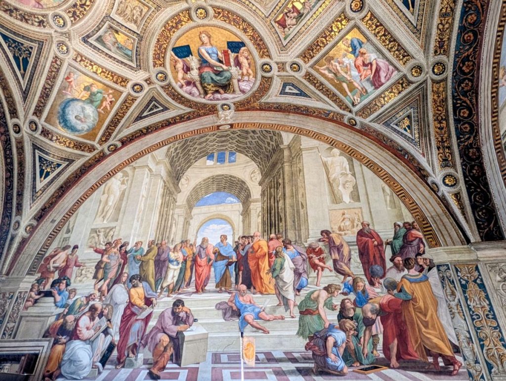 While Michelangelo’s Sistine Chapel gets the most press when talking about the Vatican, the frescoes painted by Michelangelo’s contemporary Rafael in what are now referred to as the Rafael Rooms, are also very impressive. The frescoes were commissioned by Pope Julius II at the same time as Michelangelo was working in the Sistine Chapel.