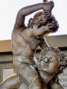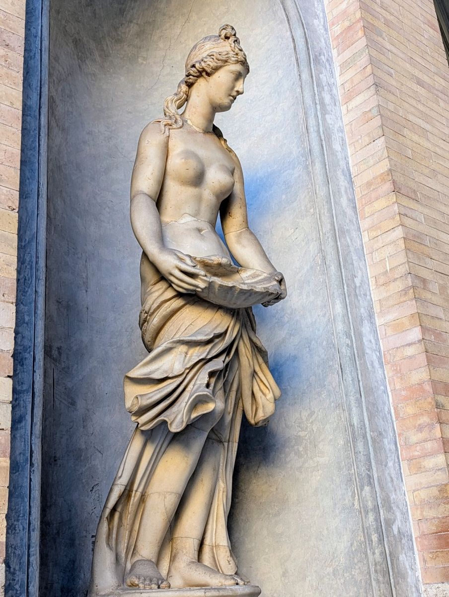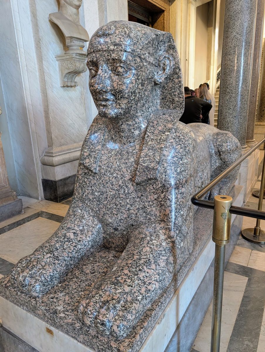 In the Gallery of the Candelabra you’ll find a statue of a young Dionysus (Greek)/Bacchus (Roman) on the shoulders of a satyr. This statue, found in 1854 at the Scala Santa, is noted for its realism and the striking detail of the eyes, which were originally inlaid with marble or painted. Click the photo to really see how creepy the eyes are!