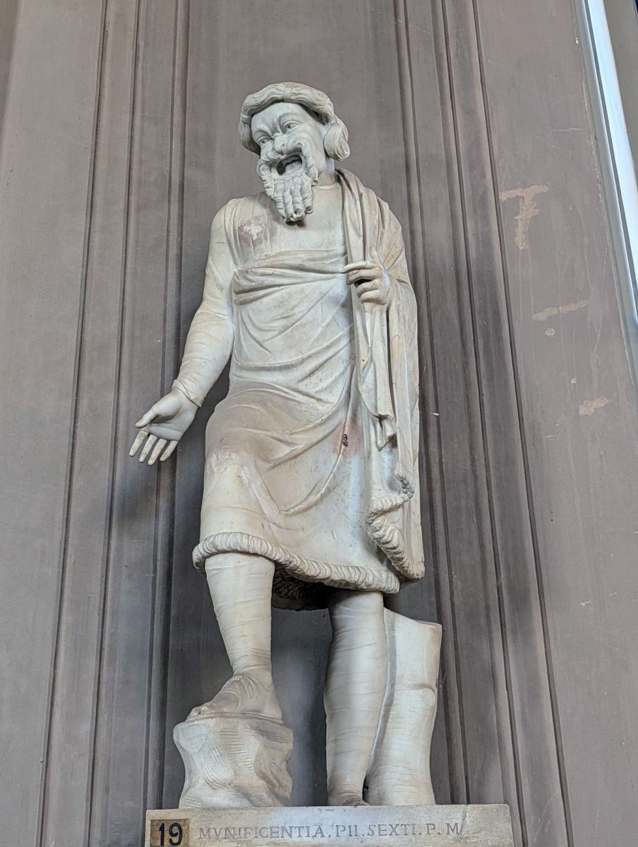 Though originally believed to be a statue of Heracles, the Vatican Museum website now states “the most favoured hypothesis identifies it with Ajax, the son of Telamon, in the act of contemplating his suicide”.