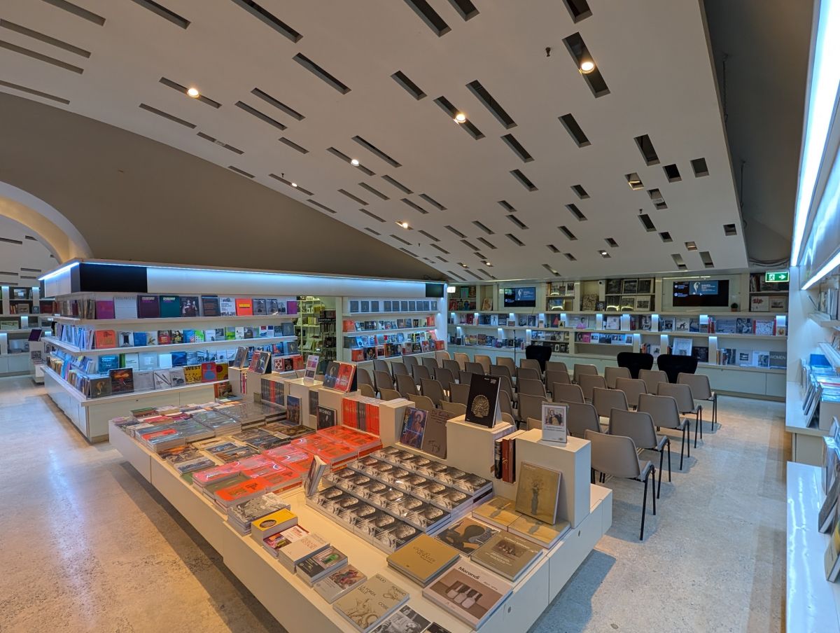 Most of the books are about art of some kind (including music, cooking, cocktails…anything than can be considered an art form), and all are in Italian (although a good number of coffee table type books with lots of pictures). They have a great selection of gifts, though, so don’t despair. We ended up buying several gifts (notebooks and some small nicknacks).