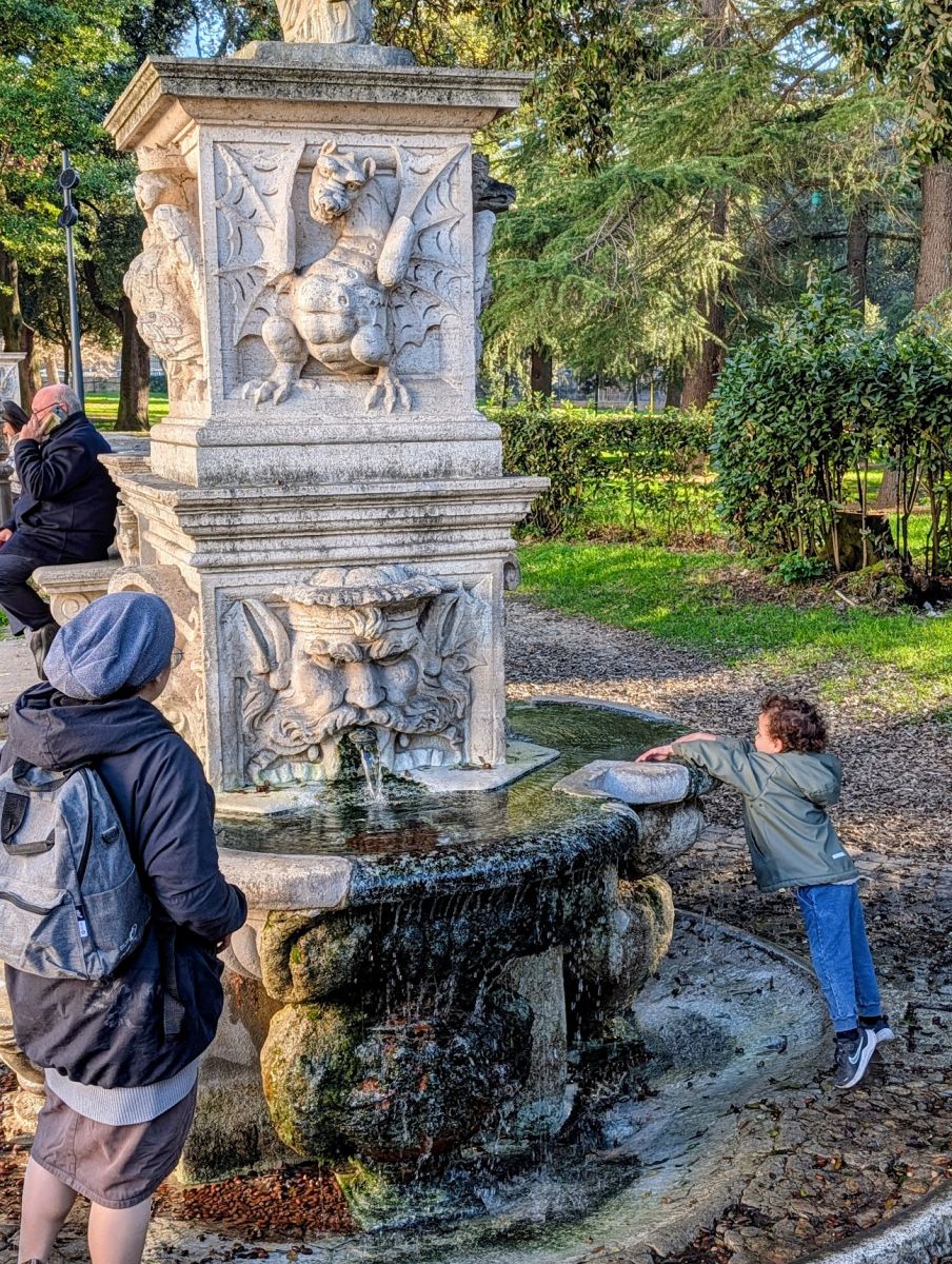 After the Spanish Steps we took a bus to the area near the Borghese Gallery to grab some lunch. We were walking to a restaurant when we happened upon Fra Diavolo, the pizza place we liked so much in Bologna, so we pivoted and ate there instead. I’ve said this before, but it bears repeating: don’t be turned off by the fact Fra Diavolo is a chain. They make a solid pizza. We got in just before the lunch rush—we were literally the only people in the restaurant when we placed our order, and by the time we were finished, it was completely packed with Italians in suits and business-casual attire. If it’s good enough for the locals, it’s good enough for me!