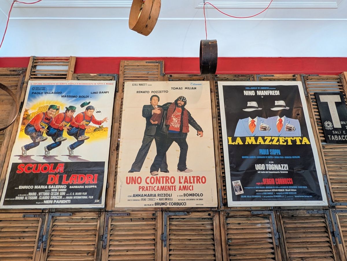 There’s also an attached caffè, accessible from the rear exit of the bookstore, or from the outside (down some stairs). We enjoyed mid-morning coffee at the caffè.