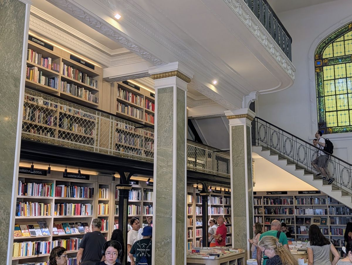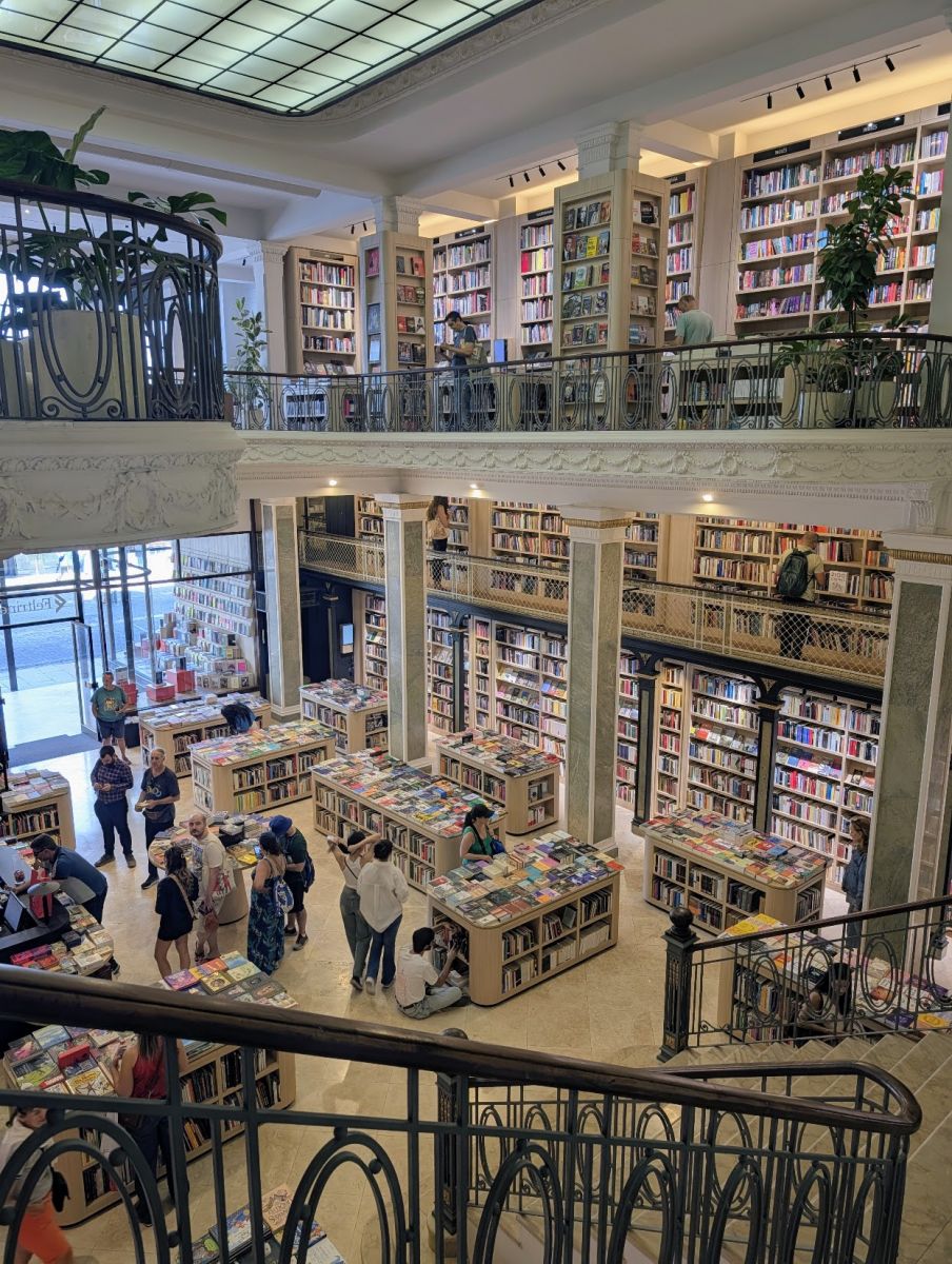 After the photography exhibit, we walked to Ciudad Vieja – Montevideo’s historic old town district for some shopping, and eventually lunch. We found a beautiful bookstore, Feltrinelli, which is an Italian chain (and the first-ever foreign chain bookstore in Montevideo). The store was stunning. There’s a cafe upstairs (message from the future: we will return and eat at the cafe), and they have nice clean bathrooms.