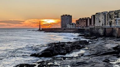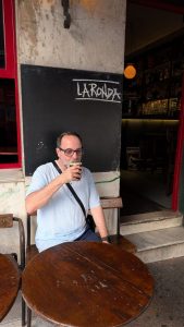 The menu looked good, but we only wanted a snack, so got (yet another) Uruguayan pizza and a couple cocktails. We sat outside with a nice view of La Rambla and the sunset. The pizza was good, as were the drinks. While were were there, Daniel walked by (he’d been visiting his cousin all day) and joined us.