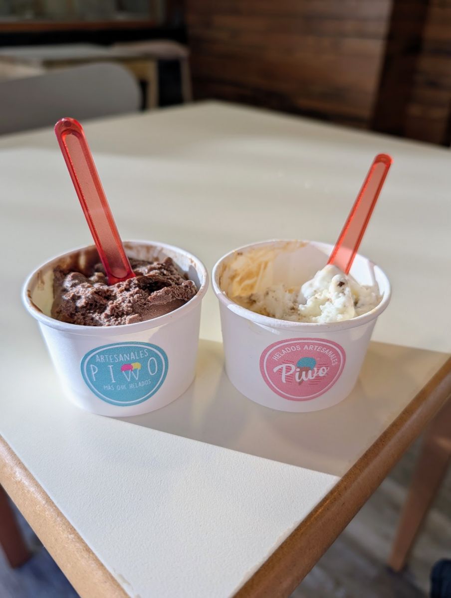 In the evening we went to Piwo Helados Artesanales, which was a cool and funky ice cream shop. The walls are full of graffiti from customers, the ice cream was delicious, and they played good music. When we entered they were playing a song from Caballeros de la Quema, a rock band from Argentina. I’d not heard them before, but they were right up my alley. (Not sure about the rest of their catalog, but I liked the song I heard.)