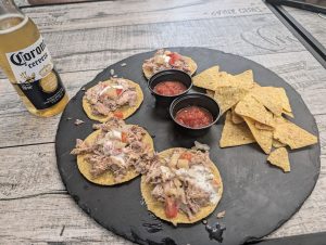 My tacos were terrible – very dry, with corn tortillas that were stiff and not very good, and I’m pretty sure the meat was chicken instead of pork (and definitely not carved from a spit). 1 out of 5 stars.