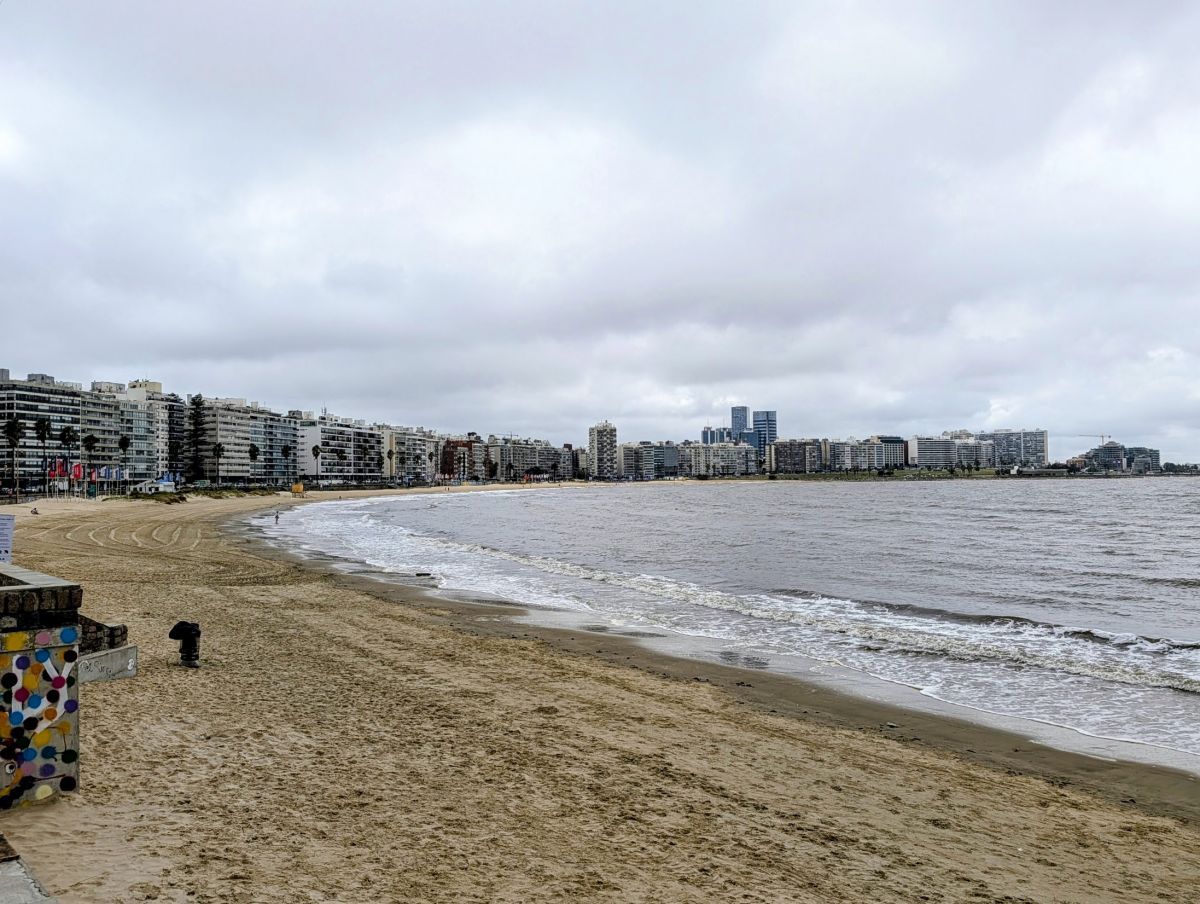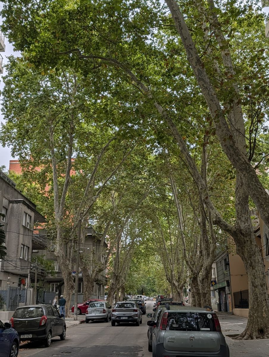 We spent the morning and afternoon exploring the Pocitos and Punta Carretas neighborhoods (barrios) of Montevideo (after our daily visit to Pausat, that is). There’s a long stretch of sandy beach in Pocitos, lined with high-rise apartment buildings. It was a windy and overcast day, so nobody was at the beach. As you move to the interior of Pocitos, there are lots of tree-lined streets with a mix of smaller apartment buildings and single-family homes. It reminded us a bit of Midtown Sacramento.
